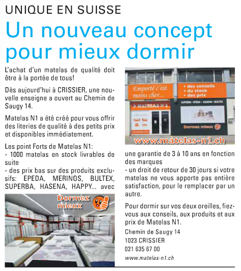 Article de presse Lausanne Cité Matelas Numéro 1